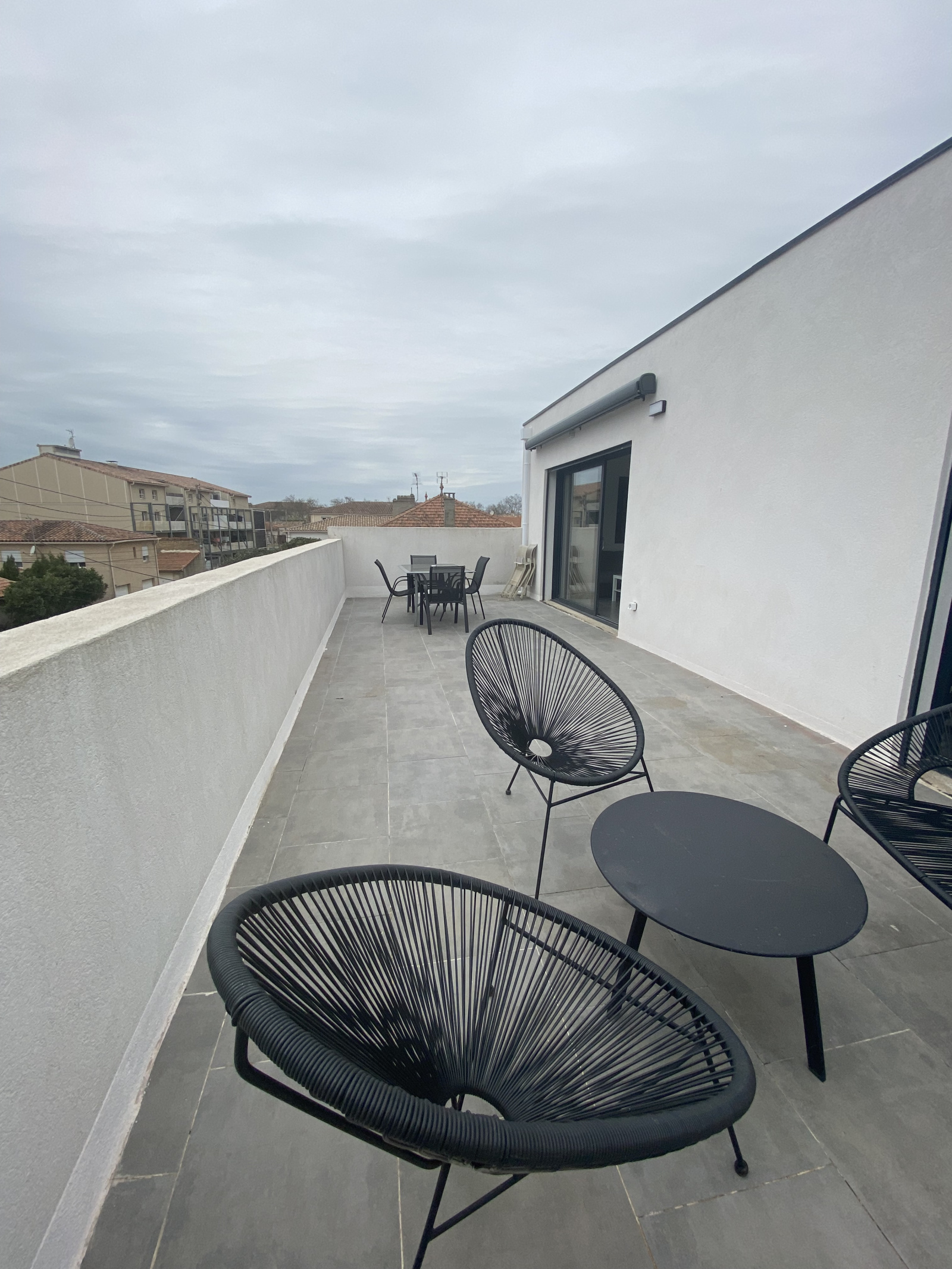 Sur la commune de Miramas, appartement de type 4 de 101m² au deuxième étage, comprenant, un hall d'entrée donnant sur un grand séjour lumineux et une cuisine meublé et équipée.