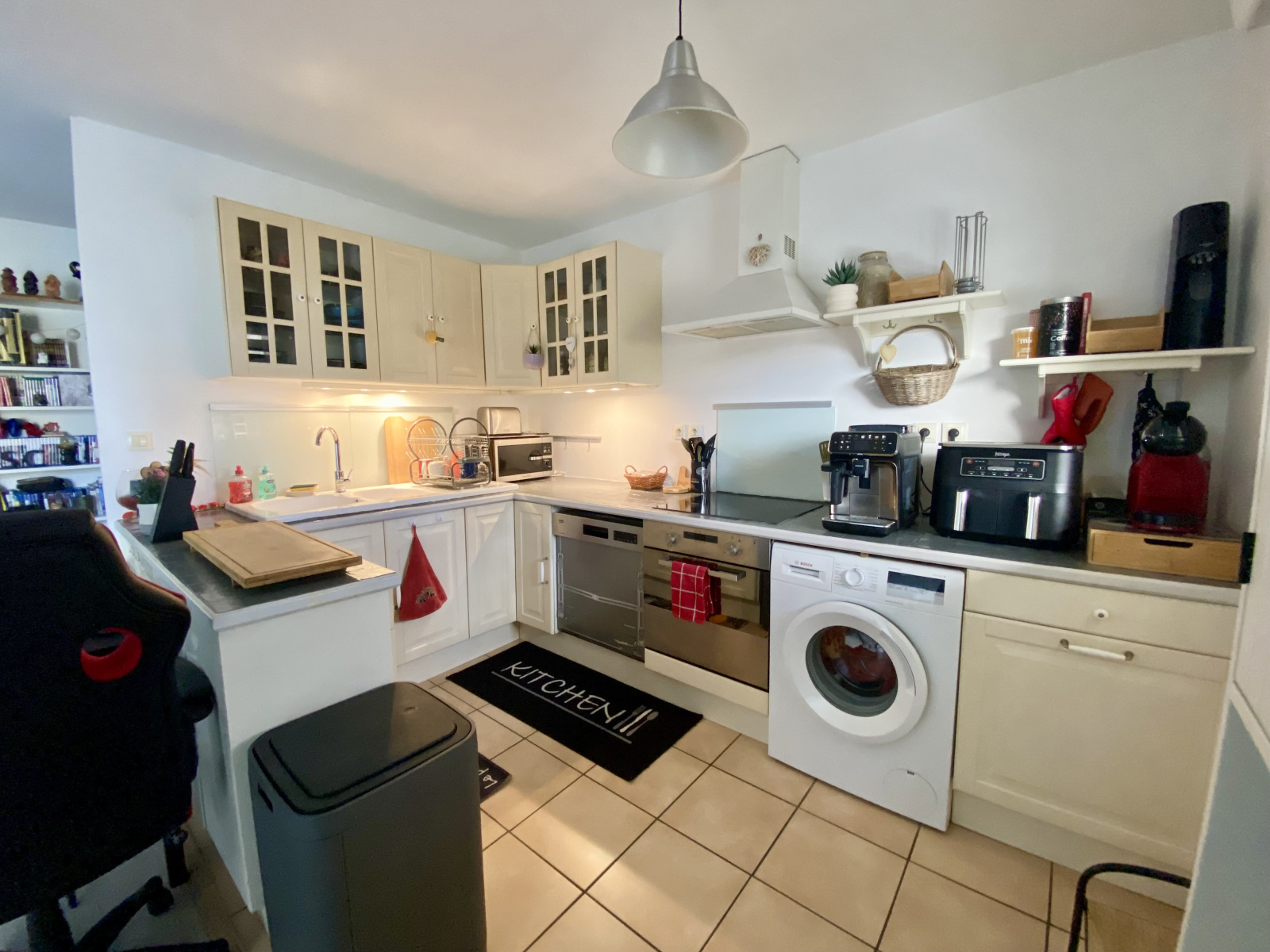 Il se compose d’un séjour agréable avec cuisine ouverte, entièrement équipée et meublée, offrant un espace de vie convivial.