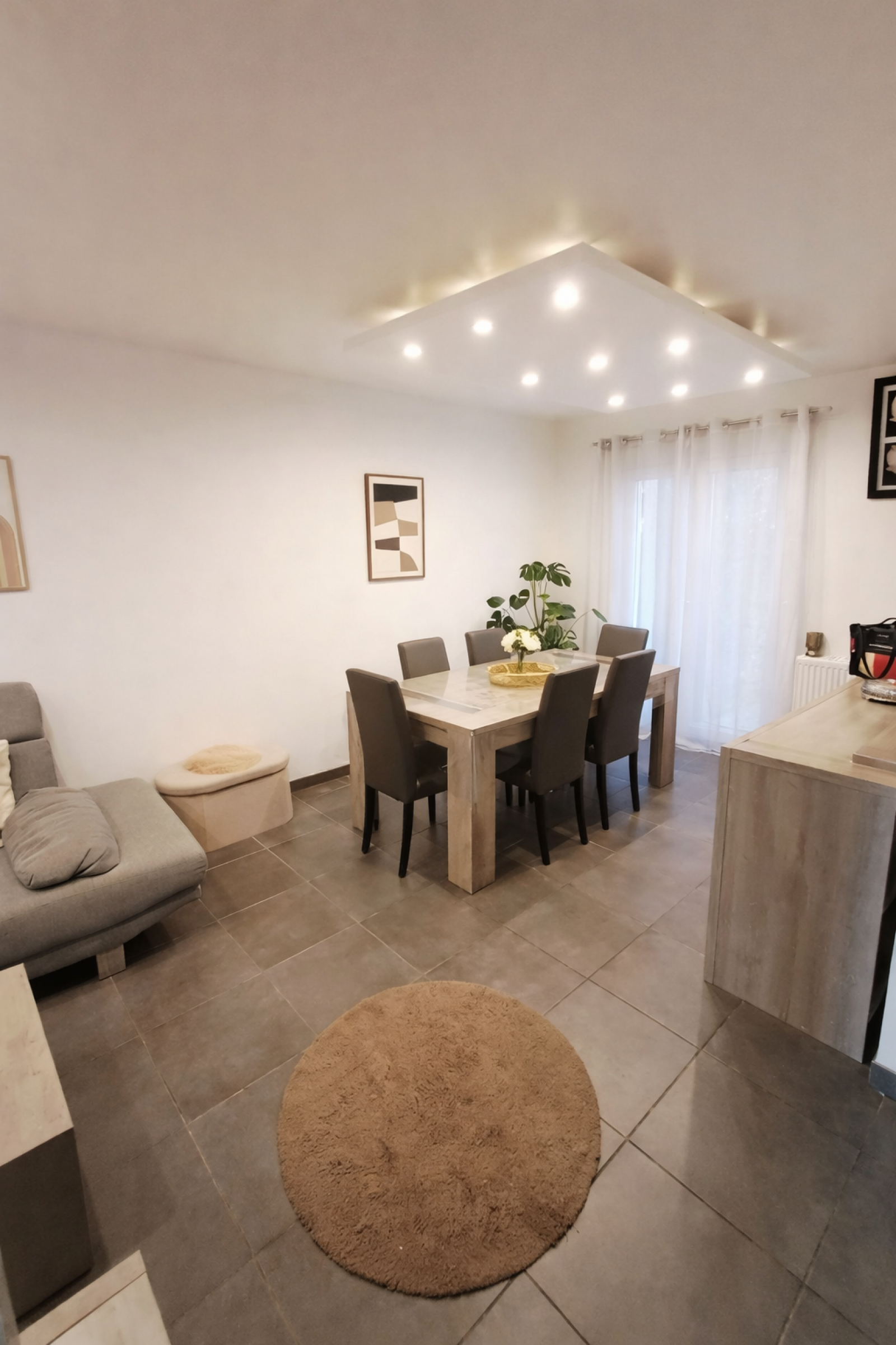Au rez-de-chaussée on découvre un petit sas d'entrée donnant sur un couloir desservant de par et d'autre la pièce de vie traversante offrant une belle luminosité idéale pour partager les moments en famille. Une cuisine indépendante équipée, fonctionnelle et pratique au quotidien. Un garage carrelé partagé intelligemment aménagé pour une partie en salle d'eau avec son toilette et pour l'autre partie dédiée aux rangements vélos/motos et autres équipements ménagers.