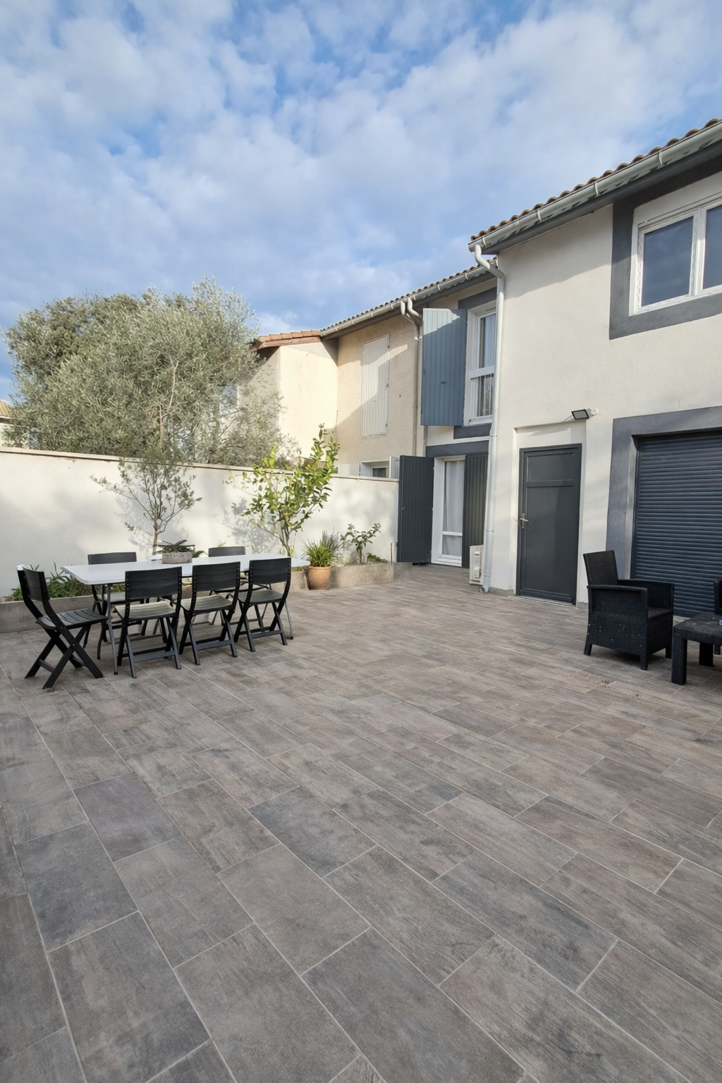 A l'extérieur vous profiterez d'une cour carrelée à l'avant de la maison et d'un jardin brut à l'arrière idéal pour un aménagement personnalisé.